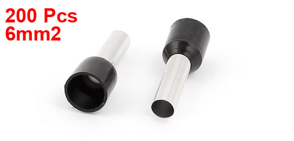 200 x 6mm2 Crimp Cord End Terminal Insulated Bootlace Ferrule Connector Black