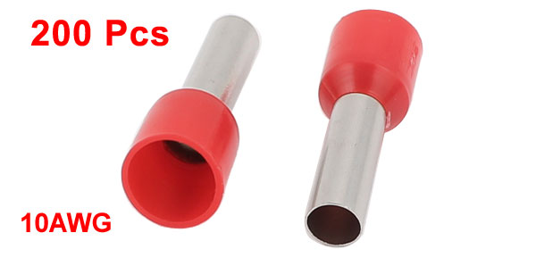 Product Name Bootlace Ferrule Connector Material Plastic, Metal Fit Cable 6mm2 (10AWG) Conductor Pin Size 3.9 x 3.5 x 12mm / 0.15" x 0.14" x 0.47"(Outer D*Inner D*L) Insulated Sleeve Inner Dia 6.3mm / 0.25" Total Length 20mm / 0.8" Color Red Weight 56g Package Content 200(+/-2%) x Bootlace Ferrule Connector - Reviews