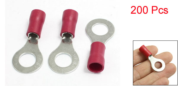 200 x Red PVC Insulating Sleeve Ring Terminals Cable Lugs RV5.5-8 AWG 12-10