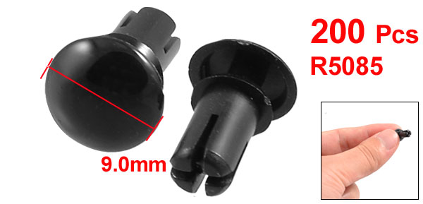 Product Name Push Rivet Part No. R5085 Head Dia.(Approx.) 9.0mm/ 0.35" Head Thickness(Approx.) 2.2mm/ 0.086" Bottom Dia.(Approx.) 5.0mm/ 0.198" Push in Height(Approx.) 8.5mm/ 0.33" Total Height(Approx,) 14mm/ 0.55" Fit for Panel Thickness 5.5-6.5mm Material Nylon Color Black Net Weight 56g Package Content 200±2% Pcs x Push Rivet - Reviews