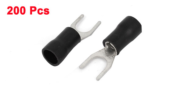 200 x SV5.5-6S Pre Insulated Fork Terminal Black for AWG12-10 Wire 1/4" Stud