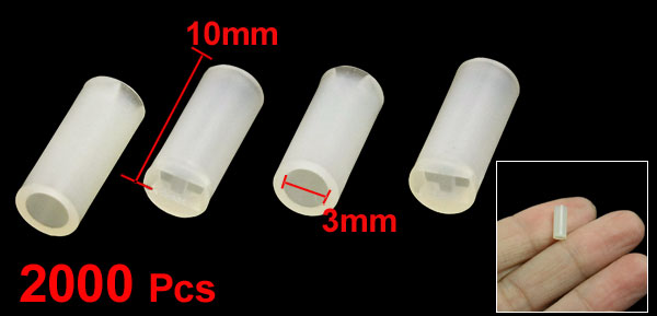 Product Name LED Spacers Quantity 2000±2% Inner Hole Diameter 3mm Hole Pitch(Approx.) 2mm Total Size 4 x 10mm/ 0.16" x 0.39" (D*L) Material Nylon Color White Net Weight 170g Package Content 2000 x LED Spacers - Reviews