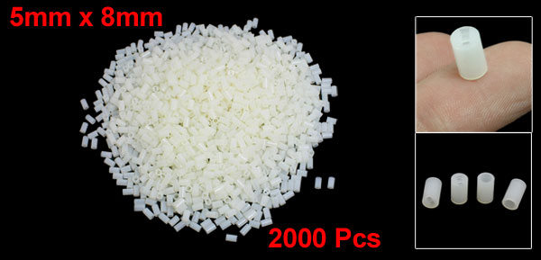 Product Name LED Spacers Quantity 2000±2% Inner Hole Dia.(Approx.) 3mm Hole Pitch(Approx.) 2mm Total Size(Approx.) 5 x 8mm/ 0.2" x 0.31" (D*L) Material Nylon Color White Net Weight 186g Package Content 2000 x LED Spacers - Reviews