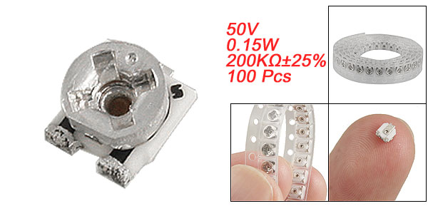 Product Name Potentiometer Quantity 100±2% Pcs Withstand Voltage 50V Rated Power 0.15W Resistance Value 200KΩ (200, 000ohm) Tolerance ±25% Mounting Type SMT Turn Number Single Resistance Change Type Linear Resistive Material Carbon Film Temperature Coefficient ±250ppm/°C Square Body Size 3 x 3mm/ 1/8" x 1/8" (L*W)