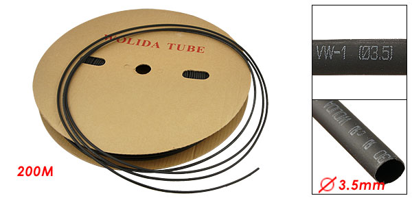 200M VW-1 3.5mm Diameter Black Heat Shrinkable Tubing