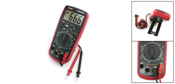 Product Name Digital Multimeter Model OYM9205N AC Voltage 200mV, 2V, 20V, 200V, 750V DC Voltage 200mV, 2V, 20V, 200V,1000V DC Current 20uA, 200uA, 2mA, 20mA, 200mA, 10A, 20A AC Current 2mA, 20mA, 200mA, 10A, 20A Resistance(Ohm) 200, 2k, 20k, 200k, 2M, 20M, 200M, 2000M Capacitance 2nF, 20nF, 200nF, 2uF, 20uF, 200uF, 2000uF Power By 1 x 9V Battery (not included) Main Color Black, Red External Mateiral Plastic Test Leads Total Length 80cm /31.5"
