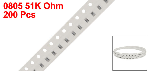 200Pcs 0805 51K Ohm Resistance 1% Tolerance SMT Chip Resistors