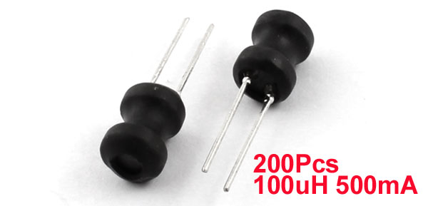 Product Name Radial Inductor Inductance 100uH Rating Current 500mA Tolerance 10% Body Size 6 x 8mm / 0.24" x 0.31"(D*H) Pin Size 0.55 x 14mm/ 0.22" x 0.55"(D*L) Lead Distance 2mm / 0.08" Color Black, Silver Tone Weight 172g Package Content 200Pcs(±2%) x Radial Inductor - Reviews