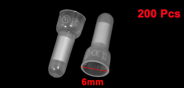 Product Name Closed End Wire Connector Model CE1 Voltage Rating AC 300V (Max.) Gauge Crimp 12-13AWG Inner Diameter 2 x 6mm Tin-plated Tube Length 7mm/ 0.27" Size (Each) 7 x 18mm/ 0.27" x 0.7" (D*L) Color Gray, Clear White Material Tin, Metal Weight 50g Package 200(+/- 2%) x Closed End Wire Connector - Reviews