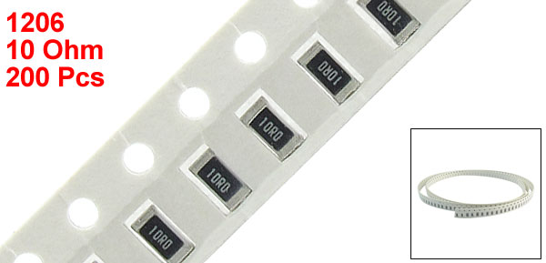 Product Name SMD Chip Resistor Size Code 1206 3216 Size 3.2 x 1.6 x 0.55mm / 0.13" x 0.06" x 0.02"(L*W*T) Mounting Type Surface Mount (SMD - SMT) Resistance Value 10 Ohm Tolerance ±1% Power 1/4W Main Color White, Black Net Weight 6g Package Content 200(±2%) Pcs x SMD Chip Resistor - Reviews