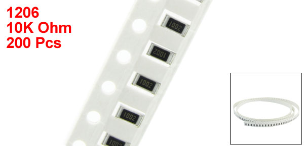 Product Name SMD Chip Resistor Size Code 1206 3216 Size 3.2 x 1.6 x 0.55mm / 0.13" x 0.06" x 0.02"(L*W*T) Mounting Type Surface Mount (SMD - SMT) Resistance Value 10K Ohm Tolerance ±1% Power 1/4W Main Color White, Black Net Weight 6g Package Content 200(±2%) Pcs x SMD Chip Resistor - Reviews