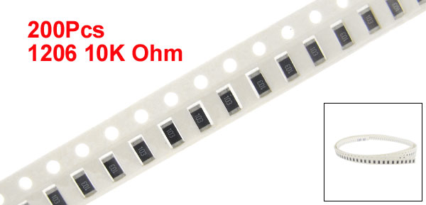 Product Name Chip Resistor Mount Type Surface Mount (SMD - SMT) Type 1206 Resistance Value 10K Ohm Power 1/4W Working Voltage 220V Tempareture -55~+155C Tolerance ±5% Net Weight 6g Package Content 200(±2%) Pcs x Chip Resistors - Reviews