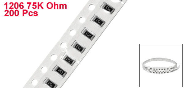 200Pcs 1206 75K ohm Resistance 5% Tolerance Thin Film SMD Chip Resistors