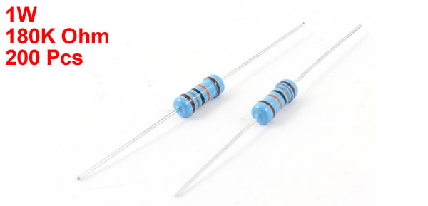 200Pcs 1W 1% Tolerance 180K Ohm Axial Lead Flameproof Metal Film Resistor