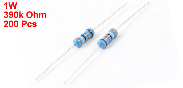 Product Name Metal Film Resistors Power Rating 1W Resistance 390k Ohm Tolerance ±1% Total Length(Approx.) 6cm /2.4" Body Size 4 x 11mm/0.12" x 0.33"(D*L) Color As Picture Show Weight 119g Package Content 200(± 2%) x Metal Film Resistors - Reviews