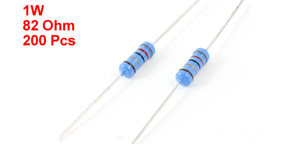 Product Name Metal Film Resistors Power Rating 1W Resistance 82 Ohm Tolerance ±1% Total Length(Approx.) 6cm /2.4" Body Size 4 x 11mm/0.16" x 0.43"(D*L) Color As Picture Show Weight 109g Package Content 200(± 2%) x Metal Film Resistors - Reviews