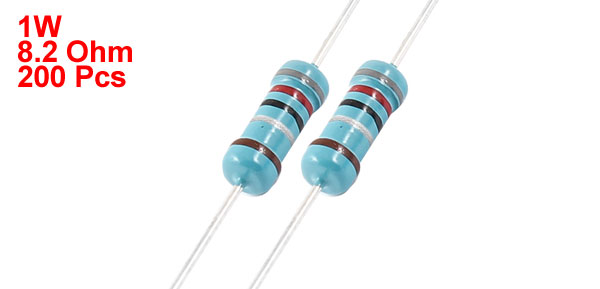 Product Name Metal Film Resistors Power Rating 1W Resistance 8.2 Ohm Tolerance ±1% Total Length(Approx.) 6cm /2.8" Body Size 4 x 11mm/0.2" x 0.55"(D*L) Color As Picture Show Weight 115g Package Content 200(± 2%) x Metal Film Resistors - Reviews