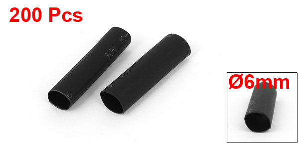 200pcs 2:1 Shinking Ratio 6mm Dia Heat Shrink Tubing Sleeving Wrap Wire 30mm