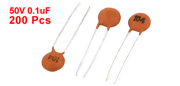 Product Name Ceramic Disc Capacitors Voltage 50V Capacitance 0.1uF Capacitance Tolerance ±10% Body Size 5.5 x 5 x 2.5mm/ 0.22" x 0.2" x 0.1"(L*W*T) Lead Space 2.5mm Lead Length 15mm Main Color Brown, Silver Tone Weight 24g Package Content 200Pcs(±2%) x Ceramic Disc Capacitors - Reviews