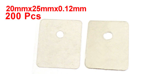 Product Name Mica Insulator Material Mica, Paper, Silicone Resin Size 20 x 25 x 0.12mm/ 0.79" x 1" x 0.005"(L*W) Color As Picture Shown Hole Diameter 3.5mm Net Weight 35g Package Content 200(±2%) x Mica Insulator - Reviews