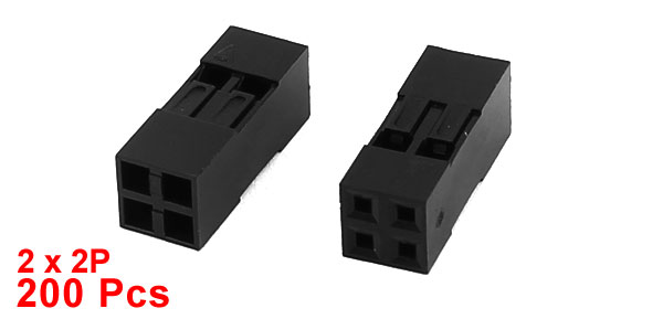 Product Name Jumper Wire Female Pin Connector Type 2 x 2P Pitch 2.54mm Size(Approx.) 5 x 14 x 5mm/0.2" x 0.6" x 0.2"(L*W*T) Color Black Metarial Plastic Net Weight 45g Package Content 200(+/-2%) x Jumper Wire Female Pin Connectors - Reviews