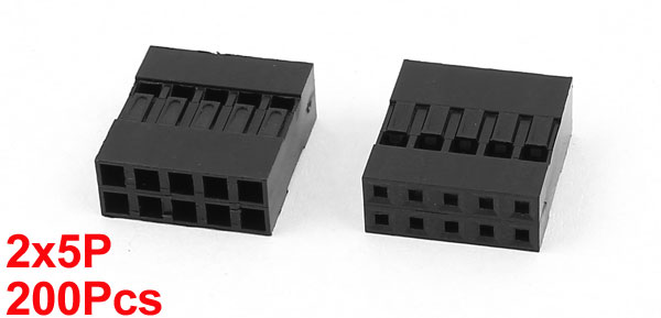 Product Name Jumper Wire Female Pin Connector Type 2 x 5P Pitch 2.54mm Size(Approx.) 13 x 14 x 5mm/0.5" x 0.55" x 0.2"(L*W*T) Color Black Metarial Plastic Net Weight 100g Package Content 200(+/-2%) x Jumper Wire Female Pin Connectors - Reviews