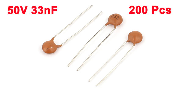 200pcs 50V 33nF Through Hole Ceramic Disc Capacitors