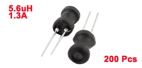 Product Name Radial Lead Inductor Inductance 5.6uH Rating Current 1.3A Tolerance 10% Body Size 6 x 10mm / 0.24" x 0.39"(D*H) Lead Distance 3mm / 0.12" Color Black, Silver Tone Weight 188g Package Content 200(±2%) x Radial Lead Inductor - Reviews