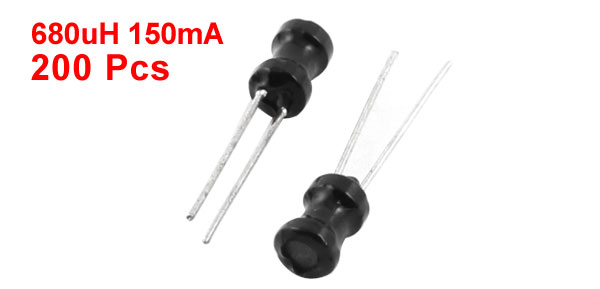 200Pcs 680uH 150mA 4x6mm 10% Tolerance Radial Lead Inductor Black