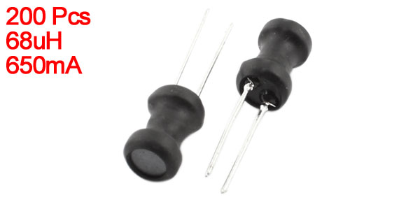200Pcs 68uH 650mA 6x10mm 10% Tolerance Shielded Radial Lead Inductor Black