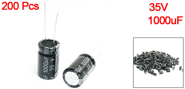 Capacitance 1000uF(±20%) Body Size 21mm x 13mm/ 0.83" x 0.51"(H*D) Lead Space 5mm Lead Length 20mm, 26mm Main Color Black Total Weight 659g Package Content 200Pcs(±2%) x Electrolytic Capacitors - Reviews