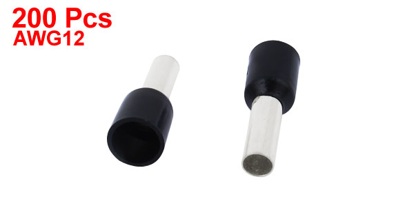 200pcs AWG12 Wire Copper Crimp Connector Insulated Ferrule Cord Terminal Black