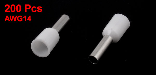 200pcs AWG14 Wire Copper Crimp Connector Insulated Ferrule Cord Terminal White