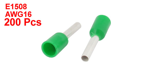 Product Name Insulated Terminal Model E1508 Design Tube Type Fit Cable Size 1.5mm2 16AWG Material Plastic, Metal Color Silver Tone, Green Net Weight 22g Package Content 200 Pcs (+/-2%) x Insulated Terminal - Reviews