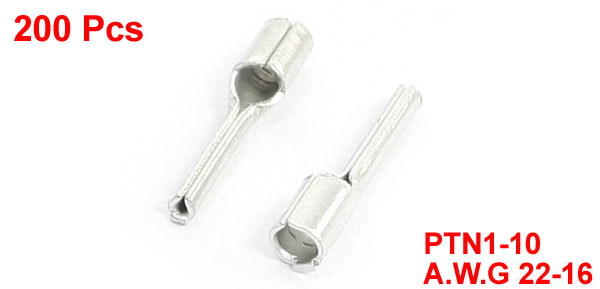 200Pcs AWG22-16 Wire Non-insulated Tube Type Pin Terminal Connector PTN1-10