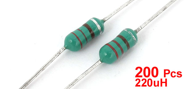 Product Name Fixed Inductor Inductance 220uH Inductance Tolerance ±10% Power 1/2W Body Size 3.2mm x 8mm / 0.13" x 0.31"(Max.D*H) Leads Dia 0.6mm/ 0.0124" Total Length 60mm / 2.4" Material Coating Epoxy Resin Weight 63g Package Content 200(±2%) x Fixed Inductors - Reviews