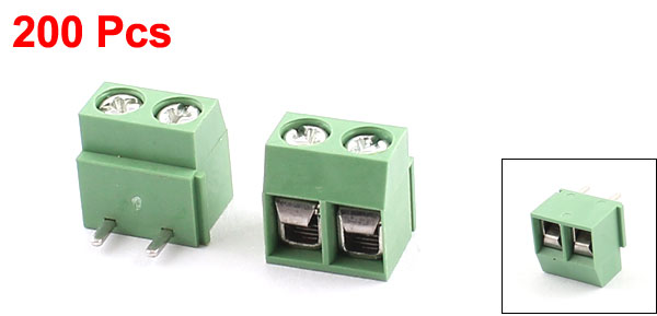 200pcs DG126 2P Plug-in Screw Terminal Block Connector 5.08mm Pitch Green