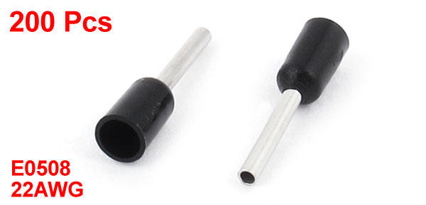 200Pcs E0508 22AWG Insulated Ferrule Wire Cord End Terminal Connector Black