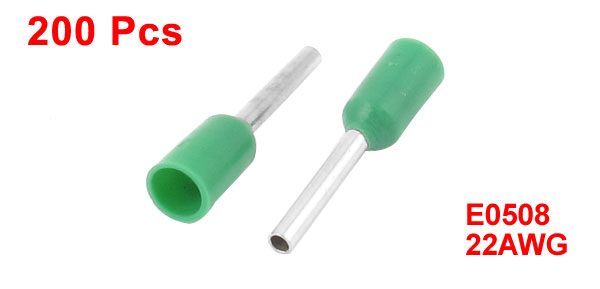 200Pcs E0508 22AWG Insulated Ferrule Wire Cord End Terminal Connector Green