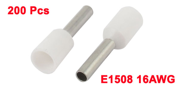 200Pcs E1508 16AWG Insulated Ferrule Pin Cord End Terminal Crimp Connector White