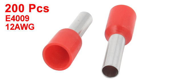 200Pcs E4009 12AWG Insulated Ferrule Wire Cord End Terminal Crimp Connector Red