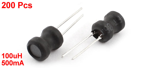 Product Name Radial Lead Inductor Inductance 100uH Rating Current 500mA Tolerance 10% Body Size 6 x 8mm / 0.24" x 0.31"(D*H) Pin Length 15mm/ 0.6" Lead Distance 3mm / 0.12" Color Black, Silver Tone Weight 180g Package Content 200(±2%) x Radial Lead Inductor - Reviews