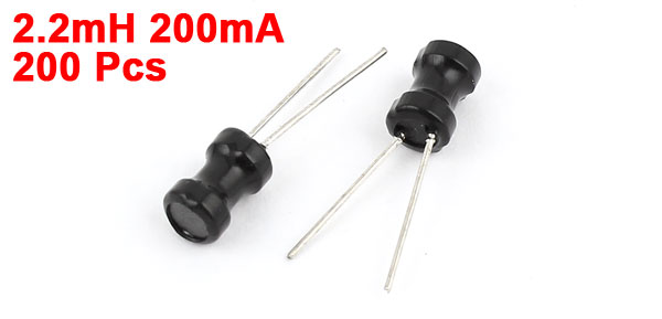 Product Name Inductor Inductance 2.2mH Rating Current 200mA Tolerance 10% Body Size 4 x 6mm / 0.16" x 0.24"(D*H) Pin Size 0.3 x 12mm/ 0.01" x 0.47"(D*L) Lead Distance 2mm / 0.08" Color Black, Silver Tone Weight 68g Package Content 200Pcs(+/-2%) x Inductors - Reviews