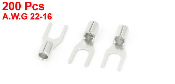 200Pcs SNB1.25-3 Non-Insulated Spade Cable Fork Terminals Connector AWG22-16
