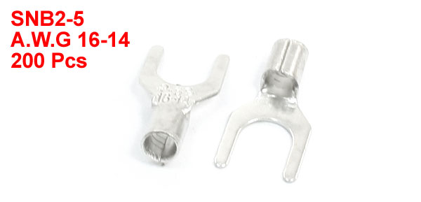 200pcs SNB2-5 Fork Type Non-Insulated Spade Cable Terminals for AWG16-14