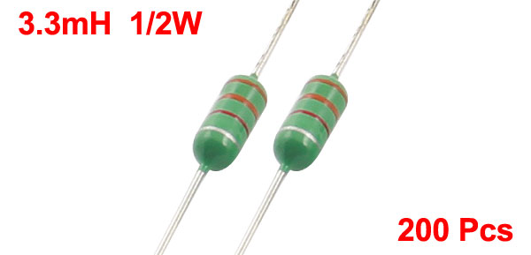 200Pcs Through Hole 1/2W 3.3mH 10% Color Ring Inductors 0410 4x10mm