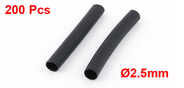200pcs Wrap Wire Black 2.5mm Dia Heat Shrink Tube Sleeving 30mm Length 2:1