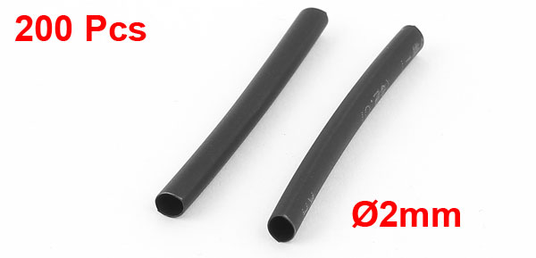 200pcs Wrap Wire Black 2mm Dia Heat Shrink Tube Cable Sleeving 2:1