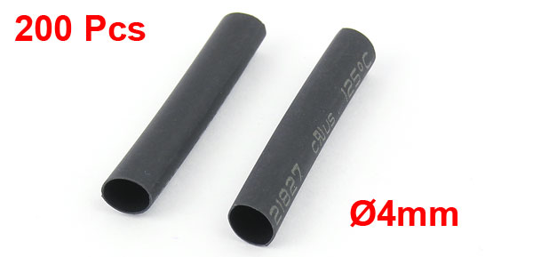 200pcs Wrap Wire Black 4mm Dia Heat Shrink Tube Sleeving 30mm Length 2:1