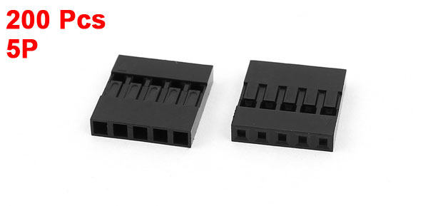 Product Name Jumper Wire Female Pin Connector Type 5P Pitch 2.54mm Size(Approx.) 13 x 14 x 2.5mm/0.5" x 0.6" x 0.1"(L*W*T) Color Black Metarial Plastic Net Weight 52g Package Content 200(+/-2%) x Jumper Wire Female Pin Connectors - Reviews